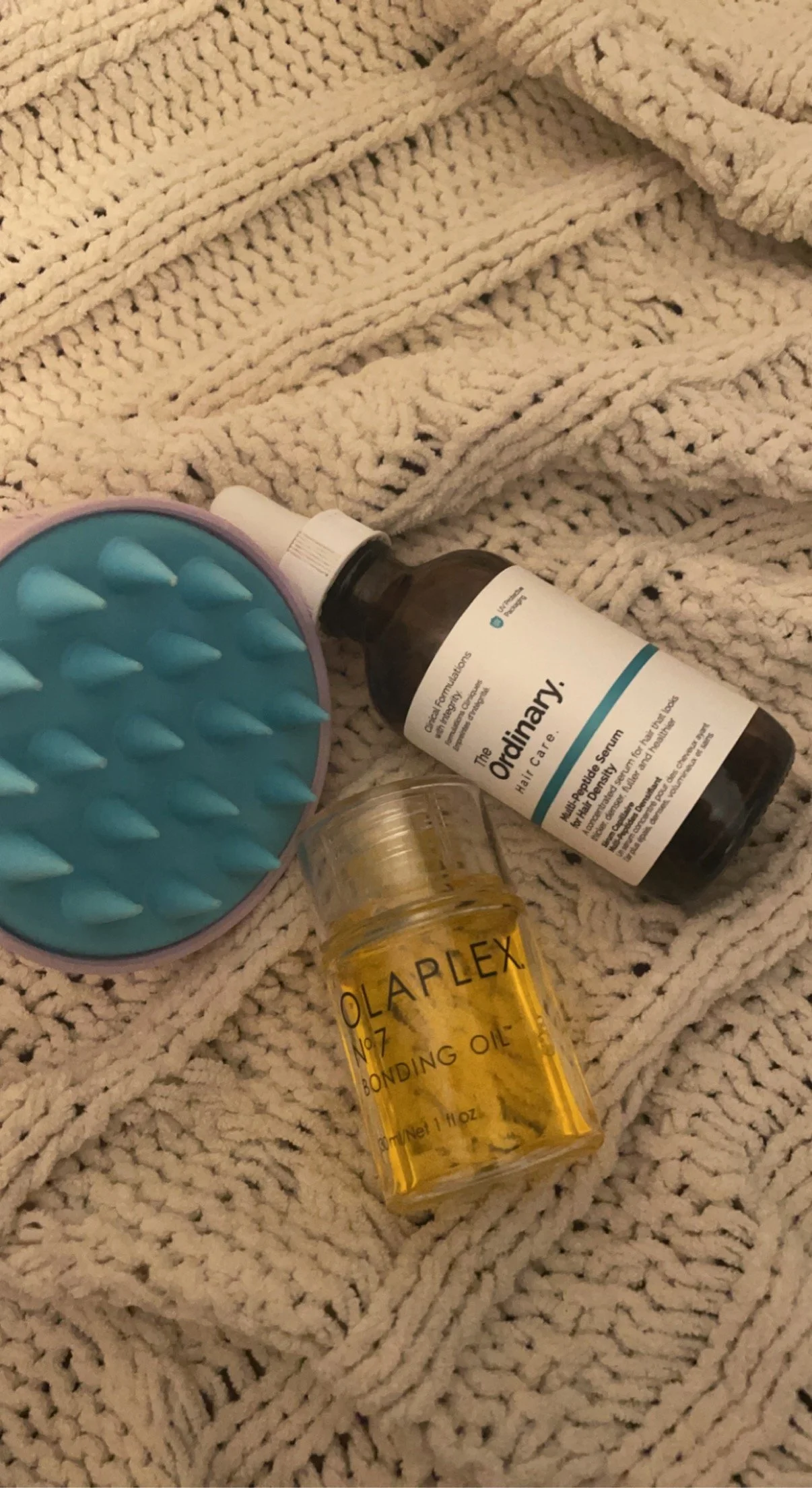 The Ordinary - Hair Density Serum - a few drops nightly of the multi peptide serum helps stimulate hair growth